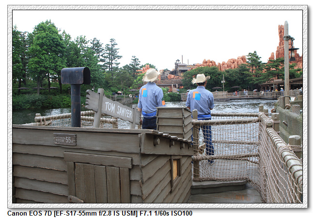 用完午餐後,距離下一場可抽fastpass還有段時間,於是跑到[西部樂園]逛逛。本來是想搭馬克吐溫號,但今天維修停駛,就一路順著來到頑童湯姆之島巨木筏。