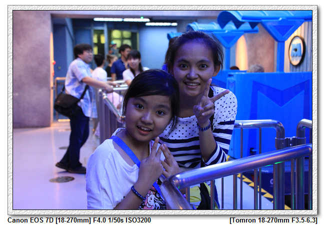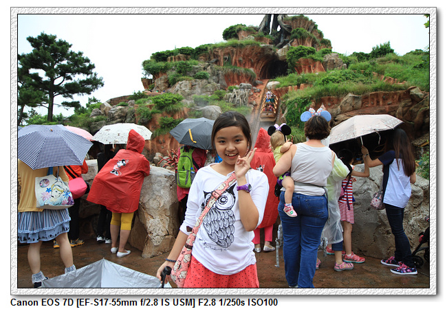 "飛濺山"應該是一整天下來最恐怖的遊樂設施了,在排隊時,小羽一直唉唉叫小羽媽為什麼要抽這fast pass。小羽媽心裡也是一整個害怕到不行,卻也只能表示鎮定:每一種都要玩,小羽爸只好跟小羽說,滑下去的時間很短,以前也坐過啊。最後的照片中,小羽、小羽媽都是頭低低的閉眼啦。