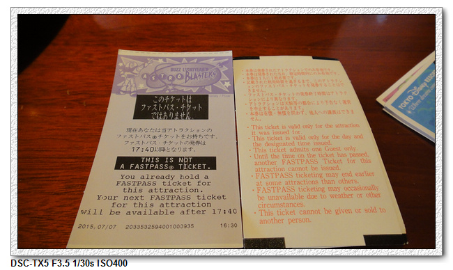 ▼【 本來想趁空檔再抽一次巴斯光年fastpass,但因為還沒玩,出現不給抽的訊息】