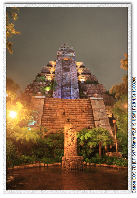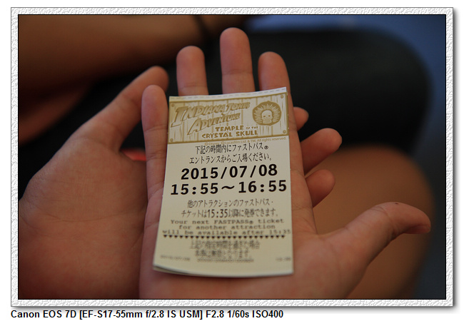 印第安納瓊斯冒險旅程:水晶骷髏頭魔宮 也是值得一玩的設施,它是坐在吉普車上,進入冒險旅程之後,高速起步、煞車、高速轉彎,很好玩,但又不失刺激。這個太好玩了,晚上我們又玩了一次。