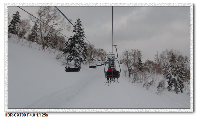 Kiroro滑雪場其實不算大,兩個山頭的大小,第一天就把所有綠線走過一遍。隔天走一小段紅線。Kiroro紅線的坡度跟綠線差不多,只是長度稍長了一些。黑線對於目前的我們,就恐怖了。