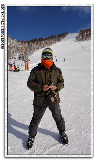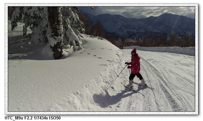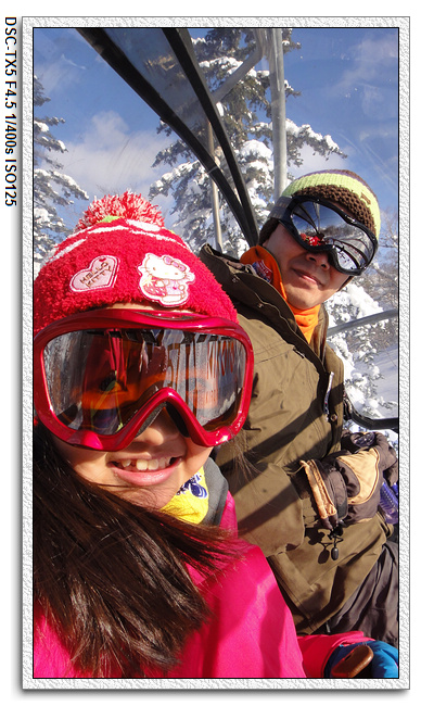 隔了兩年沒滑雪,一開始有點不順利,雙腳有時會互相打架,S型轉彎時很不順,不過滑了幾小段之後,感覺慢慢回來。況且這一次幾乎都是滑綠線為主,先把上回教練教的姿勢練熟吧。