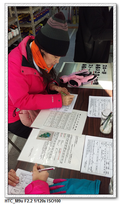 ▼【 填寫一些資料,就可租借了;填寫年齡、身高(雪板長度)、鞋size、雪杖長度】