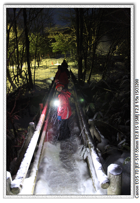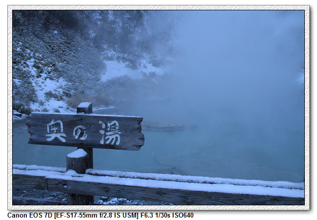 天色已暗,本來是想延著車道走回旅館,剛好遇到兩位對岸自助行的夥伴,他們想去足湯看看,我們五人就一起往大正地獄的方向前進,人多比較好助膽。