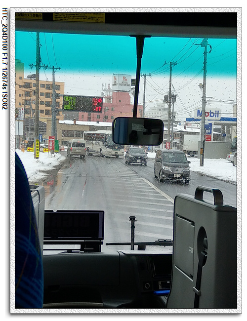 13:05準時開車出發前往留壽都,這班車人不多,整車大約不到10來人,上車後沒多久我們三人一路睡,直到中途休息區 。小羽累的不想下車,小羽爸媽只好自己下車逛逛。(休息時間約15分鐘,司機原來用日語說,我們硬是用英文問了一下,明明司機就會用英文回答) 。休息區內有數家熱食店以及販賣區,不大但東西算是齊全,後來買了一隻一百多元台幣的帶骨香腸,回到車上也已經十分鐘後了,還好不是最後一個上車。