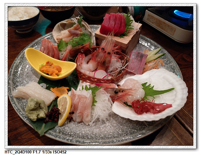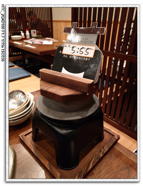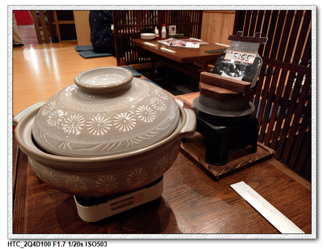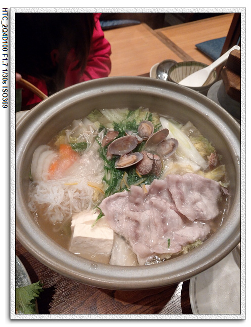 由於單點,選了小羽愛的火鍋、白飯一碗,小羽爸的啤酒、生魚片,網友大推的釜飯(要等三十分鐘,放在桌上現煮,很特別)