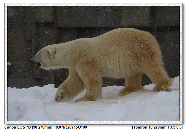 小羽最期待的北極熊,只有室外一隻,冷+下著雪,我們居然沒有駐足很久,小看了一下...就默默的離開(怎麼沒有室內館啊!太糟了!!)