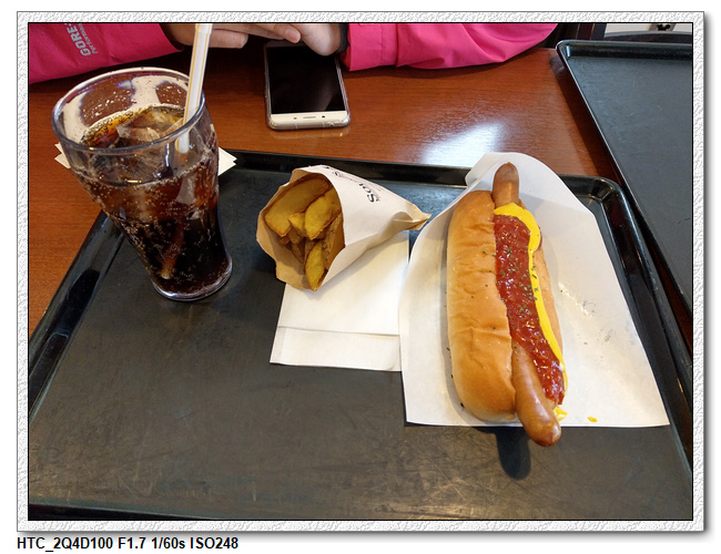 雖說下雪是不用撐傘的,但一點多下的雪真的有點大 ,不但冷,腳下的雪地也真的難走。我們剛好躲進一家店裡吃午餐,小羽媽不餓,小羽吃了小羽爸的薯條,小羽爸則是吃熱狗堡,三個人只點一份餐,還好餐廳內沒什麼人,沒被鄙視 。