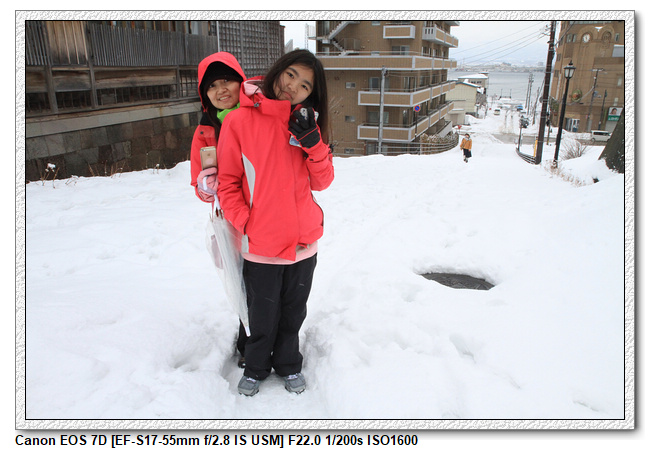 吃飽喝足開始早上的行程:元町公園+八幡坂走走(八幡坂最後沒去),但卻開始下起了大雪,昨天下雨,今天下雪,真是什麼天氣都給我們遇到了!小羽媽沒跟小羽爸說好,我們坐電車到了最後一站,慢步往回走了一站,三個人一邊抓寶一邊逛,中間還經過了一家超市,雖然沒要買什麼東西,還是進去逛了一下。