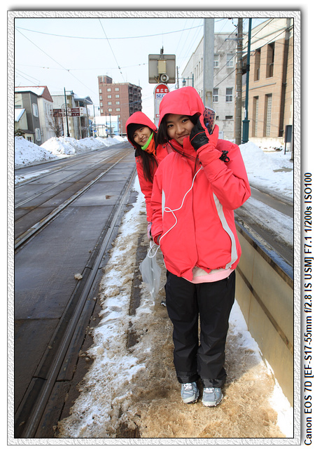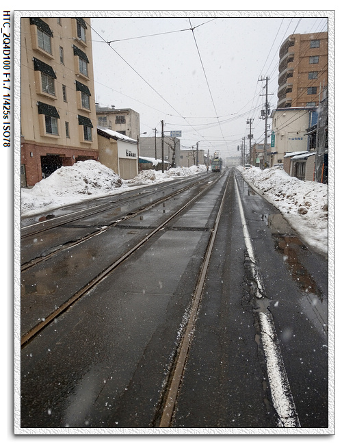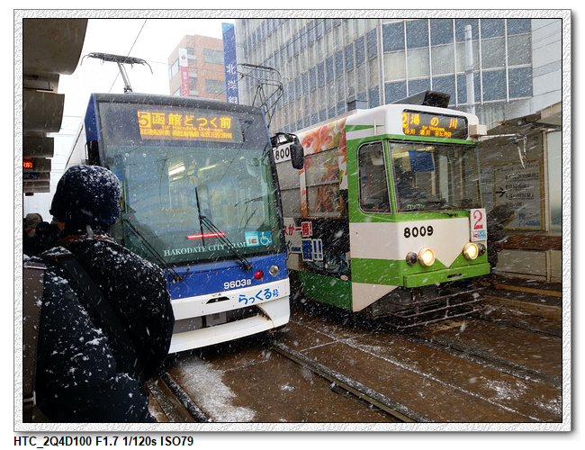 夏天在函館的路上走走逛逛倒也還不錯,但下著大雪,踩在一不小心就會滑倒積雪的路上,還沒往回走到元町公園,小羽爸決定再坐電車往回一站,再下車,小羽可是開心極了(這孩子巴不得直接坐回函館JR站吧?),要下車時,還念念不捨得說:這麼快就要下車了喔?