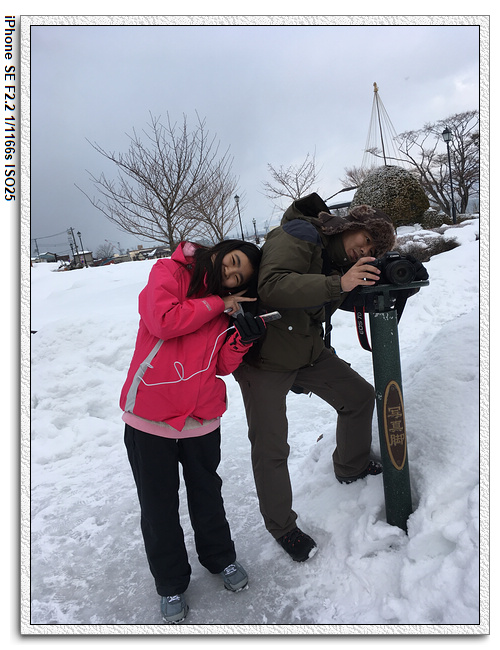 在元町公園實在也沒走多少路,連八幡坂、金森紅磚倉庫群都沒有去走。大雪紛飛的路上,我們拍了幾個網友推薦經典的照片,到元町公園遊客服務中心打了一下道館也中午12點多了,便打道回府,到飯店拿行李前,先去買了六罐小羽角膜塑形片的清洗液和小亮榆的車車,拉行李到對面坐機場巴士到函館機場了。