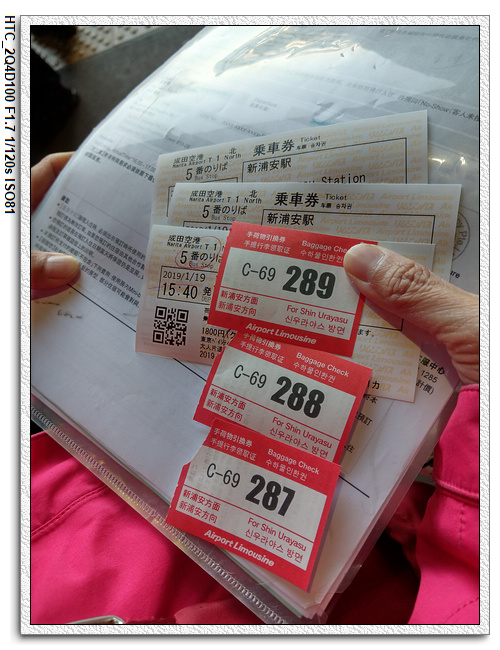 上一次來到成田機場已經是5年前的事了,有點忘記之前在哪裡處理車票。稍微繞了一下恢復記憶,就在地下室找到JR東旅遊中心。順利拿到JR TOKYO Wide Pass三日券以及處理小羽的西瓜卡(從孩童轉為大人),回到一樓接小羽以及購買前往新浦安驛的Shuttle Bus車票。