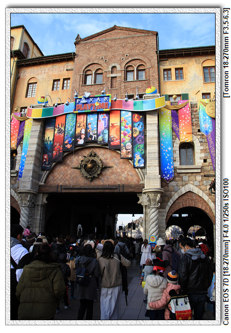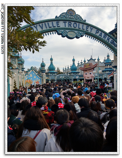 很快地抵達樂園門口,還是一樣得滿滿的排隊人潮,簡單的隨身物品檢查後,穿過海洋廣場的地球之後,我們直奔 玩具總動員瘋狂遊戲屋 ,上次光是排fastpass 就花了40分鐘。(這一次也花了35分鐘,好像沒差多少~)