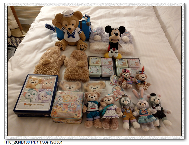 我們在店裡找了很久都沒看到睡衣達菲,後來小羽媽問了店員,原來睡衣達菲賣完了,店員還特別說全區都賣完了。真是晴天霹靂,小羽還特別期待。為了減少失落感,我們特別多選了好多隻達菲傑拉多尼。