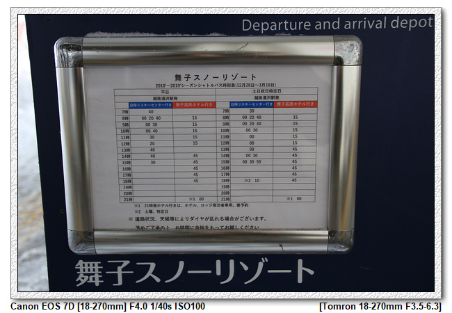 網路上提供的圖文並茂的解說,很快的我們就找到接駁車的位置,並沒有花太多的時間,找到後快速地回到溫暖的商店街等待時間。