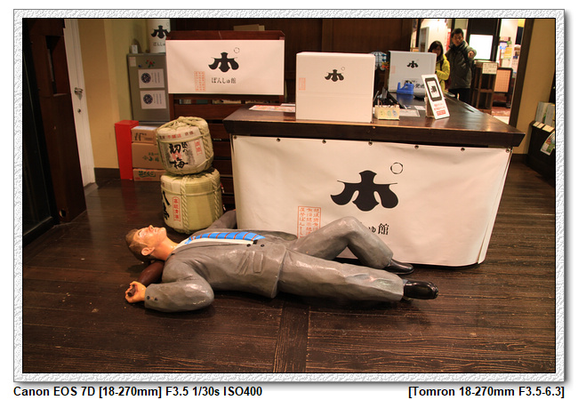 後越湯澤車站內有個不算小的商店街,除了販賣紀念商品之外,也有不少可用餐的店家(今天沒打算在這用餐,要趕搭雪場的接駁車),再往商店內走,有一區是販賣酒類商品,門口有三個喝醉大叔的的雕像,很傳神地展現酒醉的樣子,很有趣。