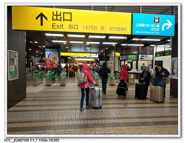 一覺醒來,睜開眼已經接近後越湯澤,列車緩慢進站後,我們開始拖拉行李下車。一下車很明顯的感受到溫度的差異,趕緊穿上最厚的外套,從車站的窗外已經是與東京物同的積雪的景色,難怪溫度下降這麼多。身旁另一群似乎也是從台灣來的遊客,突然爆出一句「安娘為,我後悔了」,頓時讓第一時間聽到的小羽跟小羽媽突然笑了出來。