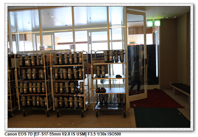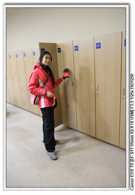 大致了解之後,發現一個比較麻煩的問題,就是ski in/out是在二樓,租雪具以及置物櫃則是在一樓,也就是說著裝完畢之後,我們要穿著重重的雪鞋,手拿雪杖以及雪板走樓梯到二樓,雖然說有電梯,但拿著這些東西坐電梯,身上還有一堆雪,想到就很奇怪,還好一天只走來回一趟,不然會哭哭。