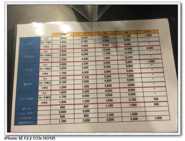 ▼【 租雪具單子,很容易理解的;舞子高原】
