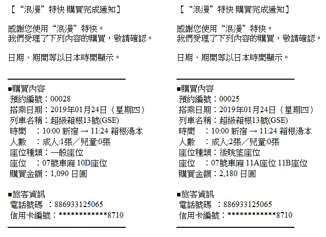 ▼【 新宿 to 箱根湯本的乘車券(座位券已上網購買)】