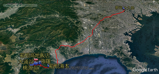 | 1.新宿車站 | 2.箱根湯本 | 3.強羅 | 4.早雲山 | 5.大涌谷 |