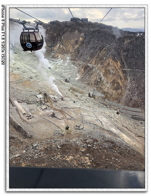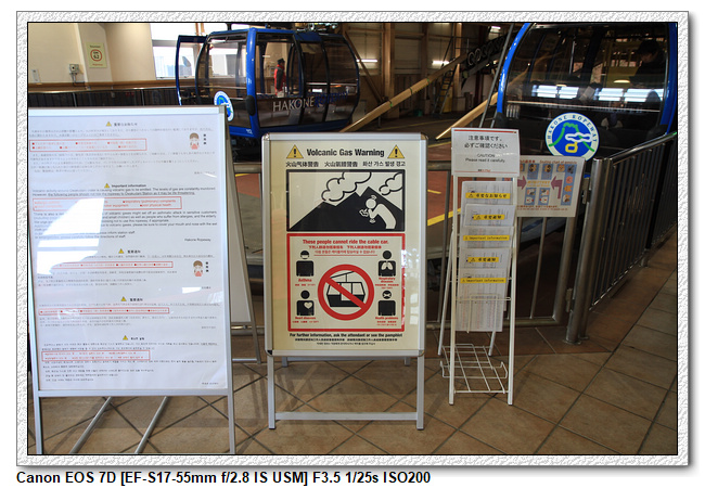而在早雲山轉接空中纜車時,每人都發一條濕紙巾,一開始不知道發這個是做啥用的,看了一下旁邊的告示版才知道,原來是用來避免經過大涌谷濃煙過盛時,遮住口鼻避免吸入過多的濃煙。