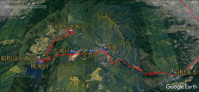 | 1.新宿車站 | 2.箱根湯本 | 3.強羅 | 4.早雲山 | 5.大涌谷 |