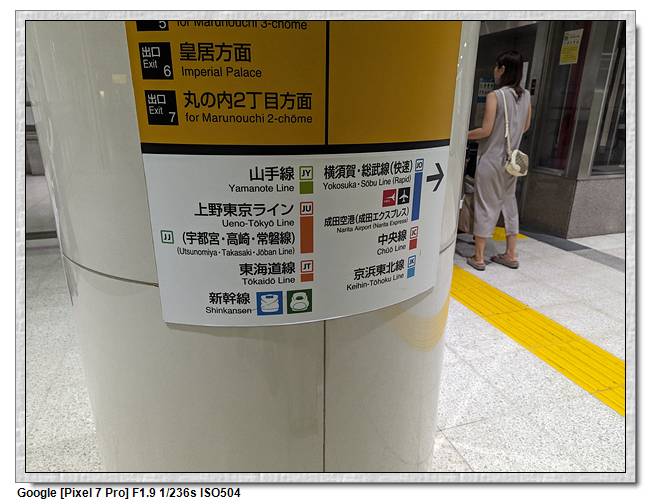 ▼【搭乘京葉線到達東京車站後,就迷路了,小羽媽先去問問要往哪個方向走,後來發現柱子有圖示】
