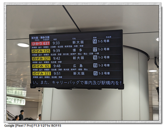 今天是移動日,要從東京前往京都。我們要搭乘Nozomi 321 09:42 出發的JR 前往京都,Google 後這是屬於東海道線。客運的JR一共有六家,要搞清楚做的是哪一家,才不會跑錯上車點。 購票時只有選擇出發與到達地點,mail上也不會寫明是哪一家JR公司,可能對日本而言是常識吧。