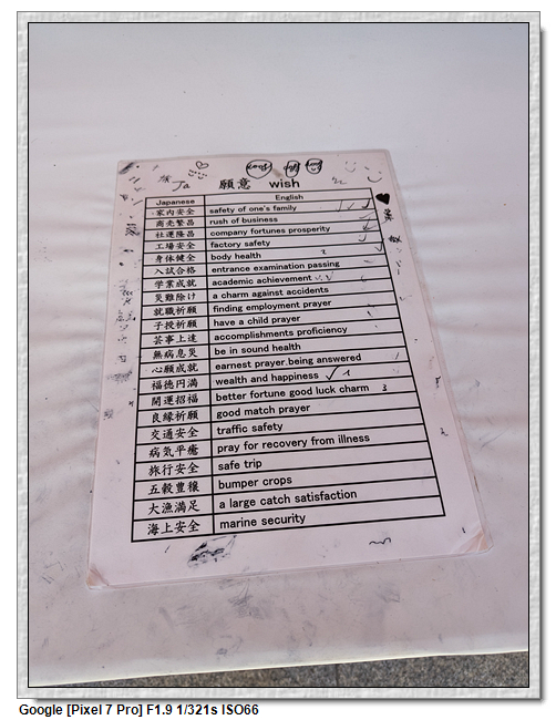 ▼【本殿旁的祈福鳥居,我們也來掛一個】