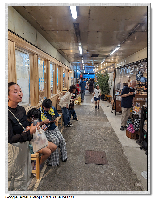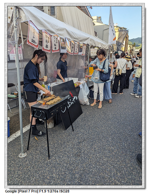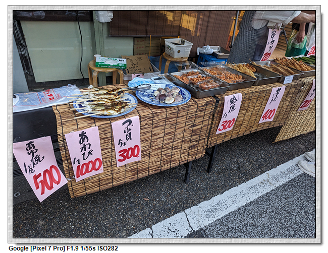 買了啤酒之後,就邊喝邊逛,在台灣很少地方能邊喝啤酒邊逛街,更何況是在日本,很特別的經驗。在市集,很多燒烤看起來很美味,但似乎被啤酒罐飽不太餓,就變成單純的逛街。