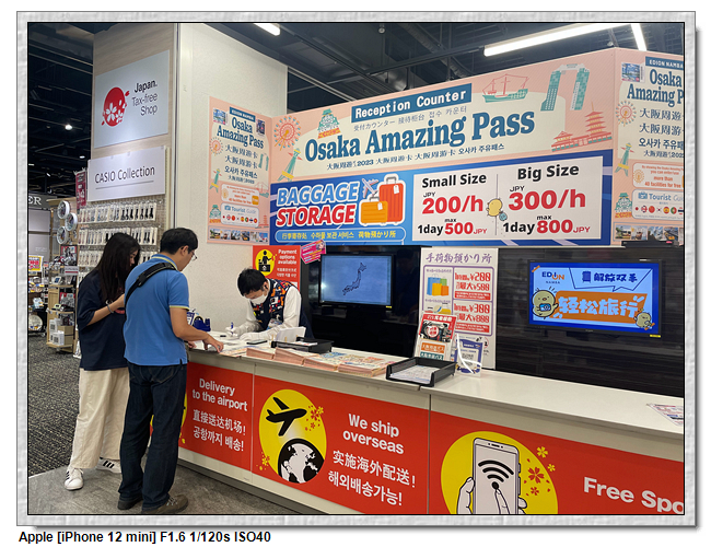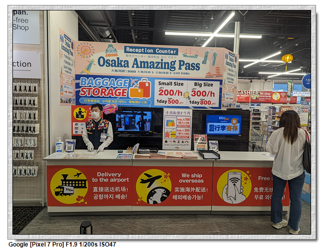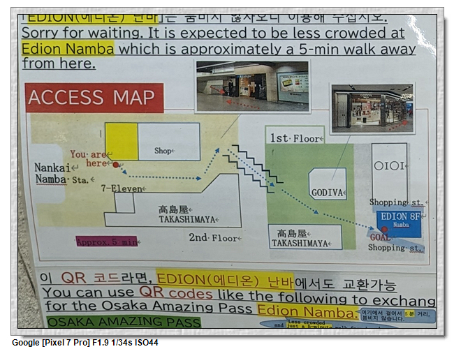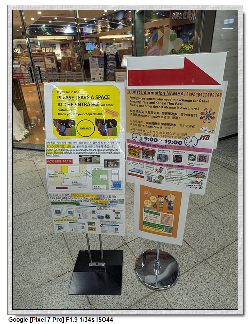 到了難波站,走到旅遊服務中心的大樓,我們找不到旅遊服務中心,在這繞了好久,最後好像是在二樓找到一個看板,上面寫周遊券不是在這裡領,畫了一個指示地圖。