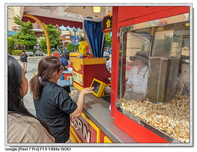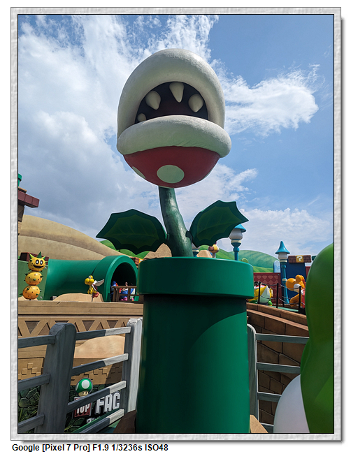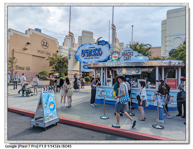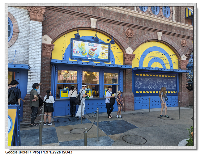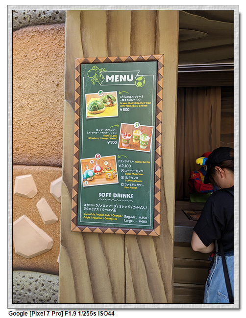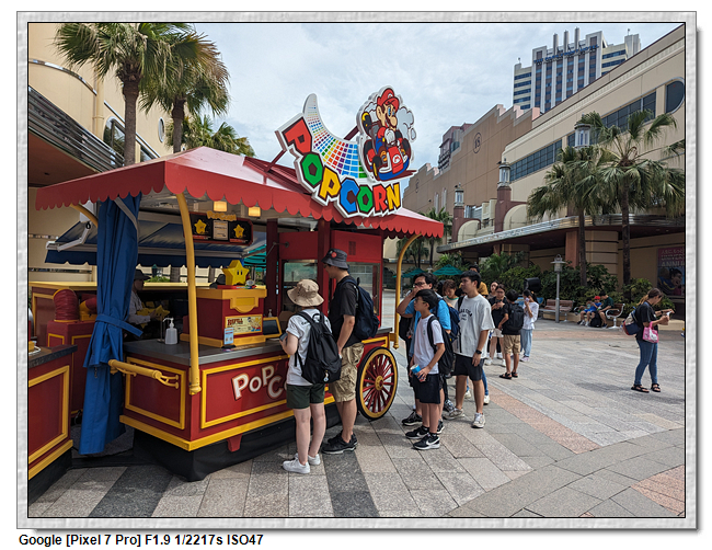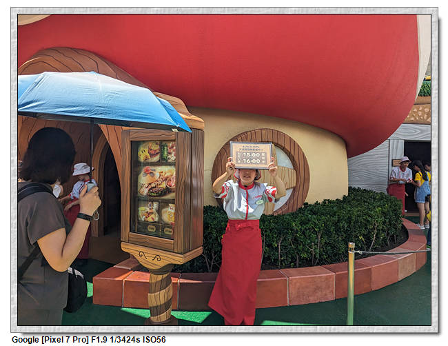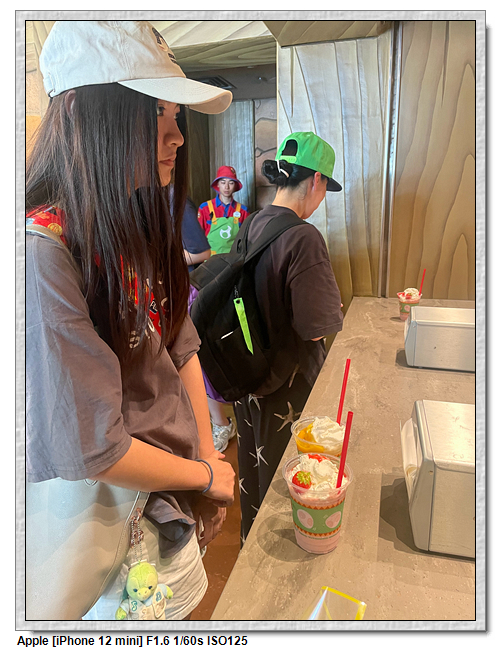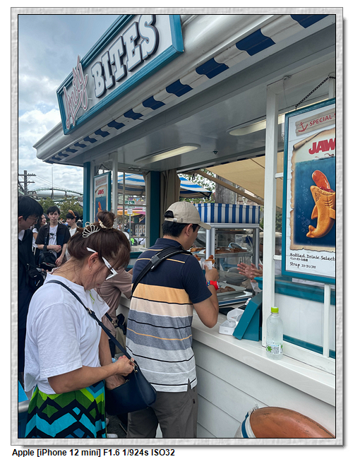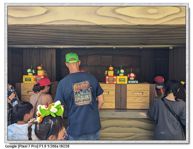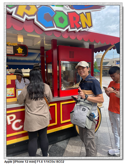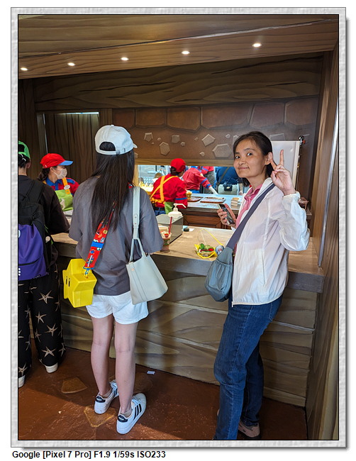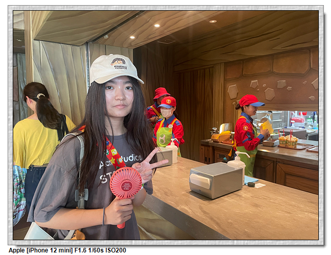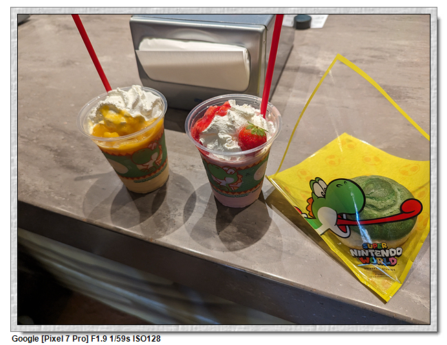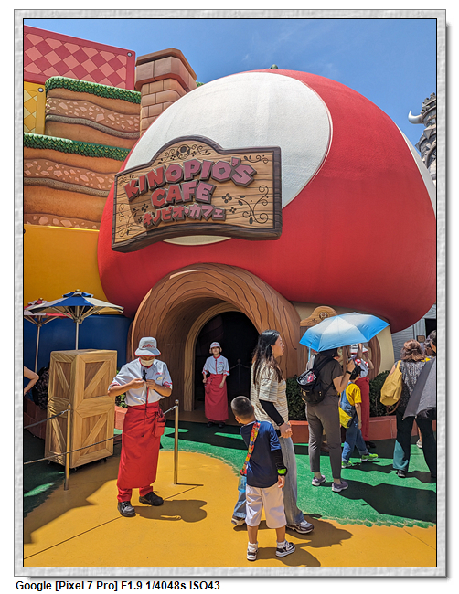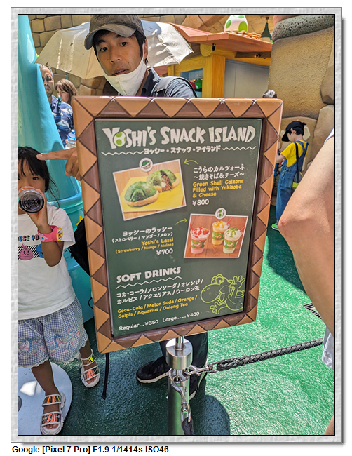 來到超級任天堂世界已經是中午了,原本打算先進來後再找東西吃,第一個想法是到奇諾比奧咖啡店,結果必須預約,且要到15:00才能進,太晚了,那時已經離開這裡了。再來就是耀西小吃島,大排長龍,這家現在應該是超級任天堂世界唯一有賣吃的店。