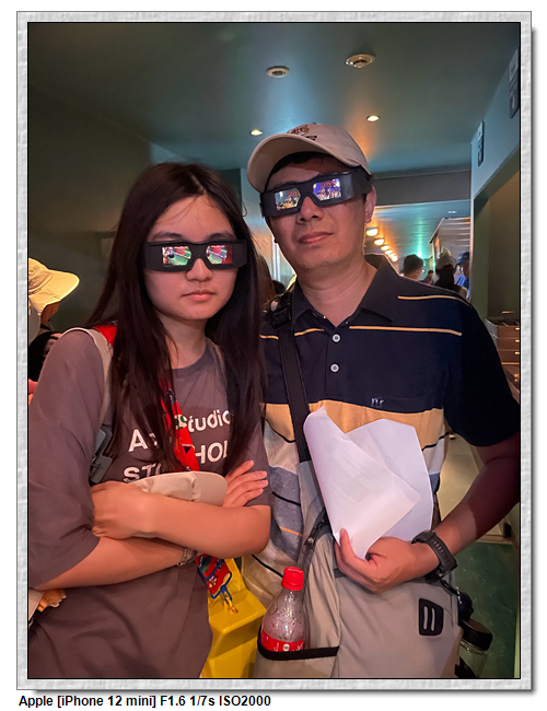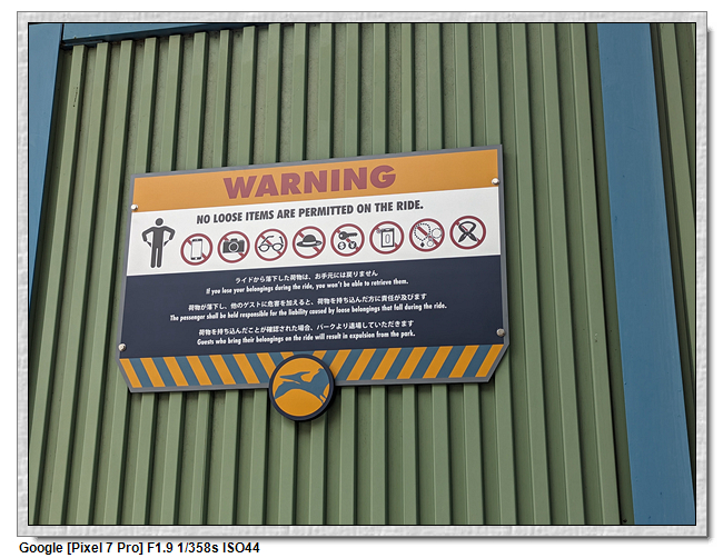 飛天翼龍就是飛行雲霄飛車,除了雲霄飛車的背心型安全扣之外,在小腿的地方也會有安全扣綁住腿部,之後呈現90度的飛行狀態,平行於地面,之後就是雲霄飛車的360度旋轉。這個是整個影城最刺激的設施。 這裡除了有置物櫃可以置物之外,相當嚴格的檢查身上有無多餘的物品,基本項鍊、手鍊等一要脫掉放置物櫃之外,如果是穿拖鞋的遊客,腳上要繫上兩條橡皮筋,避免脫鞋飛落。身上物品寄放後,進場前會請你翻出口袋確認無物品, 還要通過金屬門確認,很搞工。小羽一開始很興奮想玩,越接近時開始害怕,坐上設施時有點後悔,但結束後又很興奮的想玩第二次(但最終只玩這一次,時間問題)。小羽媽則是硬著頭皮陪玩。小羽爸則是上升最高點往下的瞬間感到害怕,之後就還好。