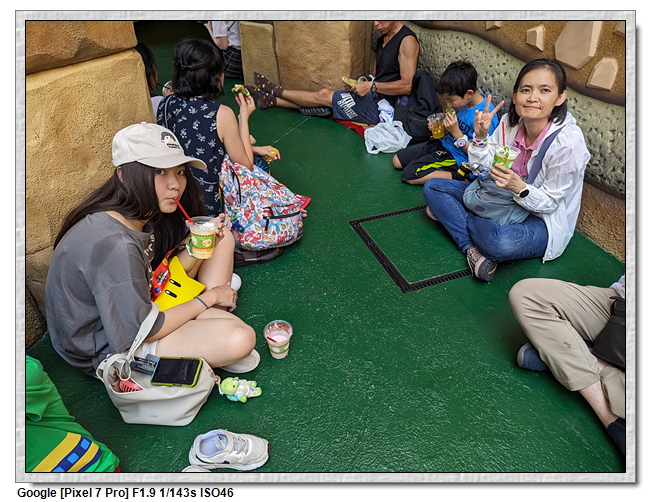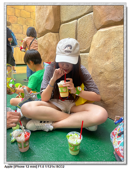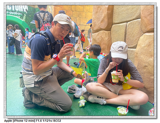 耀西小吃島本身不是家餐廳,而是販賣部,所以沒有座位,超級任天堂世界本身座位就超級少,有座位的地方也都坐滿了人,所以大家都是靠牆席地而坐,天氣熱,還要躲太陽,第一次玩樂園這麼克難。所以下次進來前一定要先吃飽。