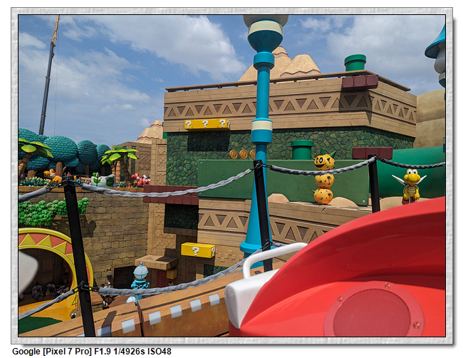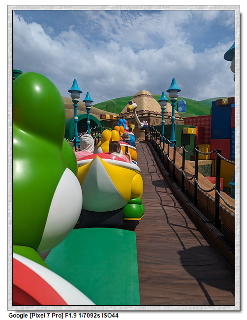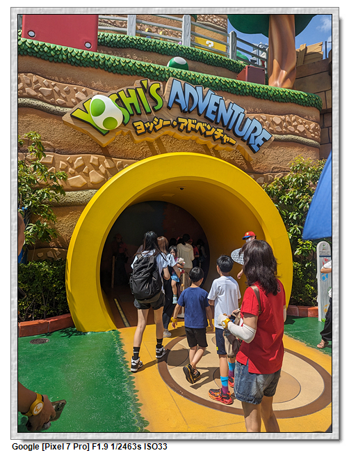 耀西的冒險應該是我最不推薦的設施,就像是小小世界一樣,以為是純觀光,但手環可以收集徽章,這個不知道怎麼收集且沒遮陽,完全暴露在大太陽下,又不能撐傘,熱爆~