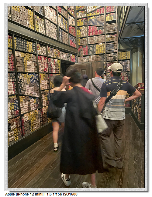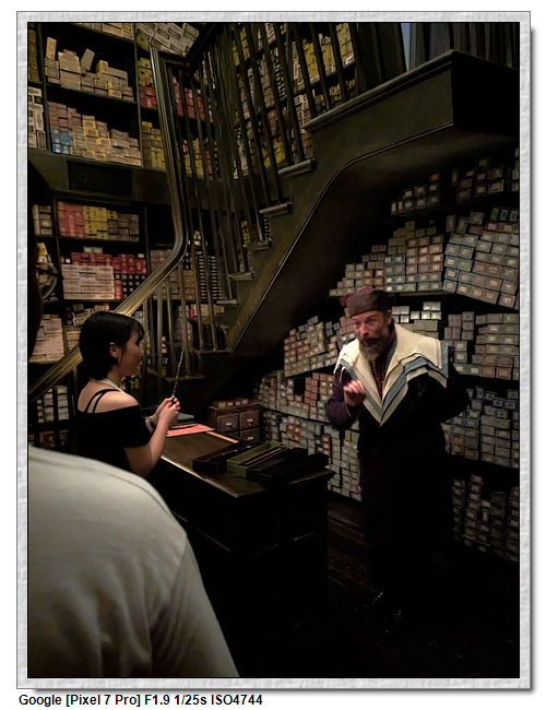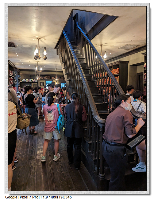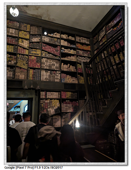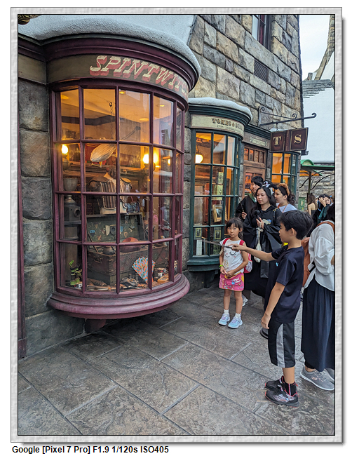 魔杖是要到奧利凡德的商店購買,這是要排隊的,原因是裡面空間不大,先有個魔杖守護人「魔杖選擇它們的巫師」的情境小表演,之後才是魔杖店舖。