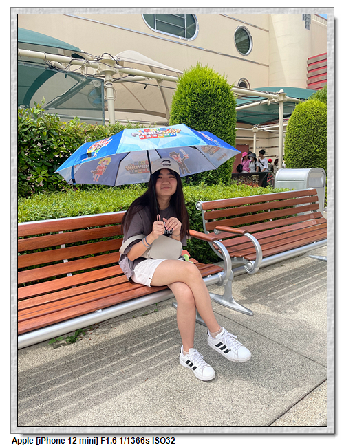 飛天翼龍最大的缺點,就是整個排隊期間是沒有任何可以遮陽的地方,今天又相當炎熱,還好小羽媽有帶傘可以遮陽,排隊70分鐘,整個是曬爆了