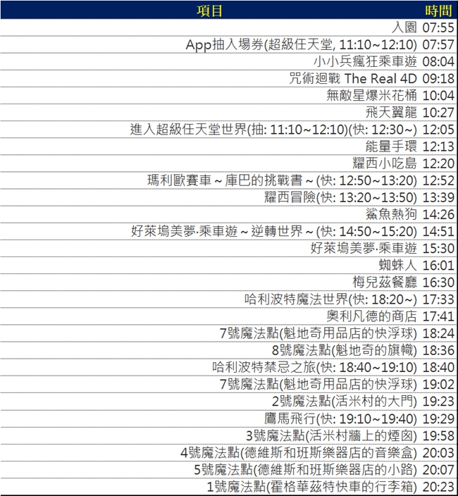 ▼【大阪環球影城第一天的活動流程】