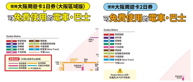 ▼【周遊卡1日券與2日券可乘坐的電車是不同的的】