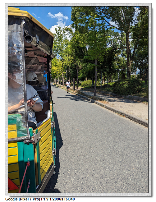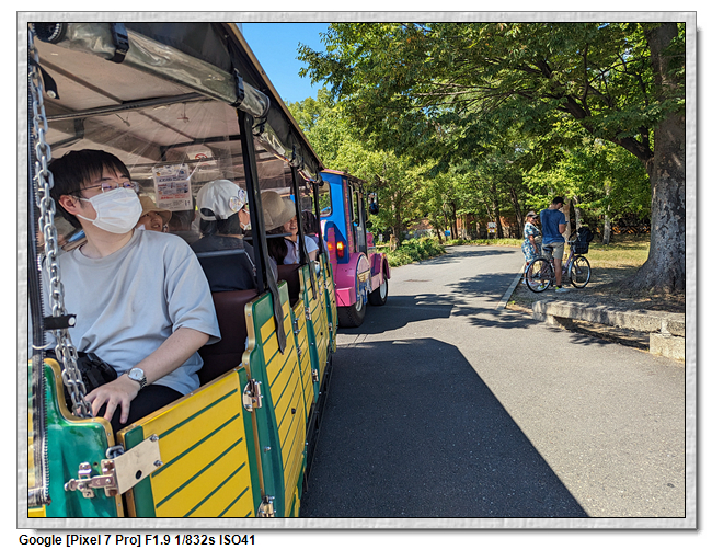 結束遊船,要前往車站繼續下個行程,但看了一下車站位置,再看看炙熱的天氣,然後身旁有台小火車,我們就很自然的選擇坐小火車去車站,小火車需自費,一人400円,此時可以理解為什麼單程小火車這麼多人坐。 乘坐時遇到一群應該也是台灣客的家族出遊,男生選擇用走的,幾位婦孺則是坐小火車。13:54坐上小火車,預計14:03開。抵達時,那群男生說等很久,他們兩點就走到了,我們才剛出發,感覺不需走很久,但我們就是不想走路。