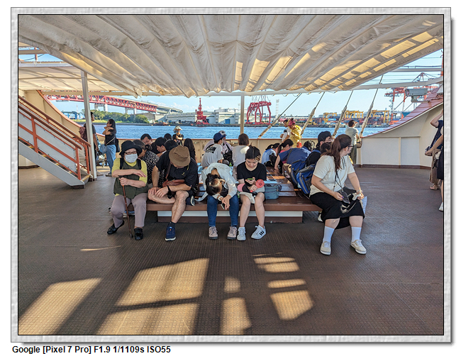 ▼【上船後,小羽爸選擇到甲板上拍照(曬太陽),小羽跟小羽媽則是坐在下層處(沒有太陽)】
