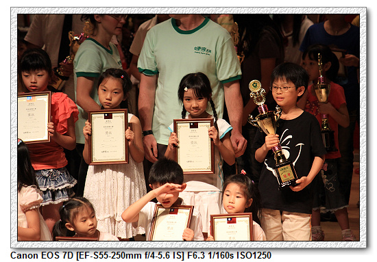 這次L1組有得獎的小朋友有20位(好像是20位,沒聽清楚,但確定是20位以上),我們等了很久都沒有聽到小羽的名字,小羽媽還一度以為沒有得名,小羽爸則是聽到第四名沒有小羽的名字,就很高興的說有進步了。最後小羽的名次是第二名。