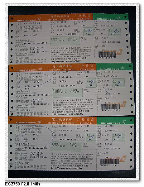 還好到塔悠路堤防停車場時剛好有位子(有花點時間找停車場),已經6:15分了,趕緊招呼計程車。這時真的要感謝那位運將,開車技術很好(開的很快,可用"飆"字形容),到達機場才6:20分,人也很客氣。還好有順利劃到機位,快嚇死了~~~