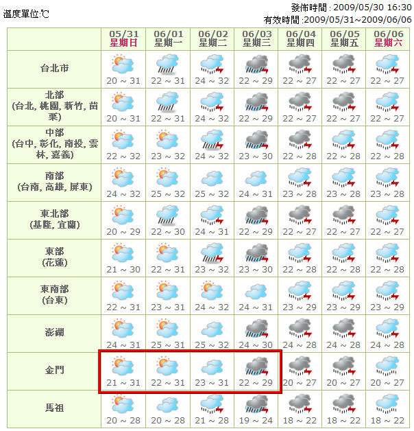不過出發前幾天,中央氣象局天氣預報對於金門地區似乎不太樂觀。