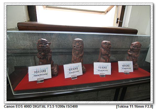 風獅爺大致上分為四種,加冠功名、招財、平安、避邪,依手上的物品作區分。