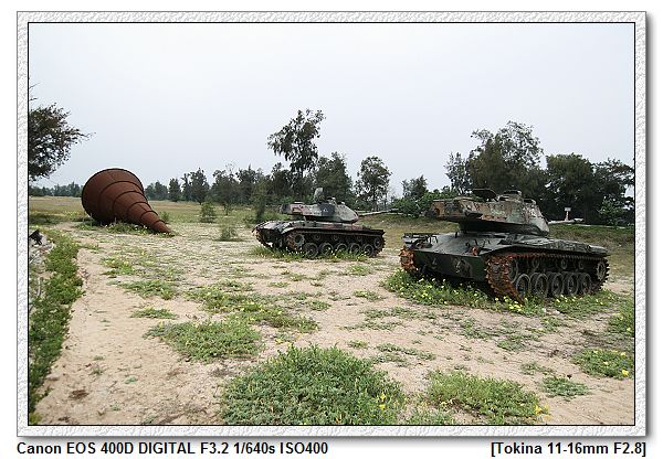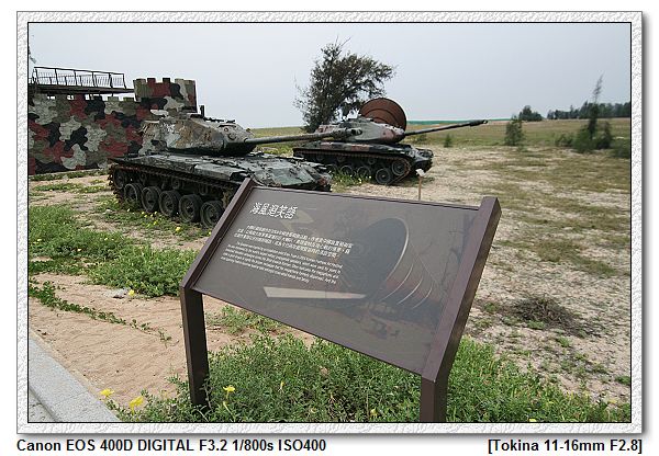 不過我們比較懶,所以騎機車趴趴走∼途中看見有兩輛坦克停留在沙灘上,旁邊還有一個喇叭形狀的不明物體。