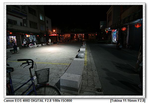就是中午「吧薩」那條街,即金城鎮東門里自強街,民國13年由金門商會會長傅錫琪集資興建,街貌兼具日本大正風格與洋樓之美。街道兩旁皆為二進店屋,第一進為洋樓,第二進為閩南式建築,外觀整齊、古典雅致,為金門最具特色的老街;近年來,老街進駐不少如情調餐廳、個性酒吧、特產商行等店家,夜裡並有華美的燈海點綴其間,呈現一股熱絡歡娛的新氣象。