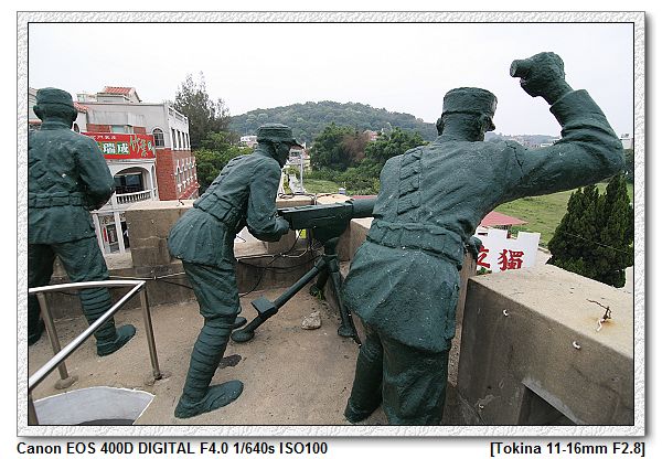 八達樓子樓頂塑有7位戰士雕像分據四方,有人握槍、有人投彈、有人偵察,微妙微肖。