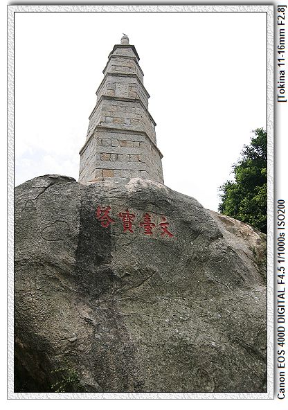 【文臺寶塔,背面有一魁星踢斗的浮雕,據說是有辟邪鎮災之效】